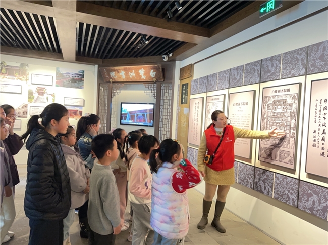 “新春乐游” 公益讲解活动从除夕持续到正月初七,讲解员和志愿者每天为游客详细介绍白鹭洲书院的历史沿革、建筑特色、文化内涵,让更多人了解庐陵文化的深厚底蕴。